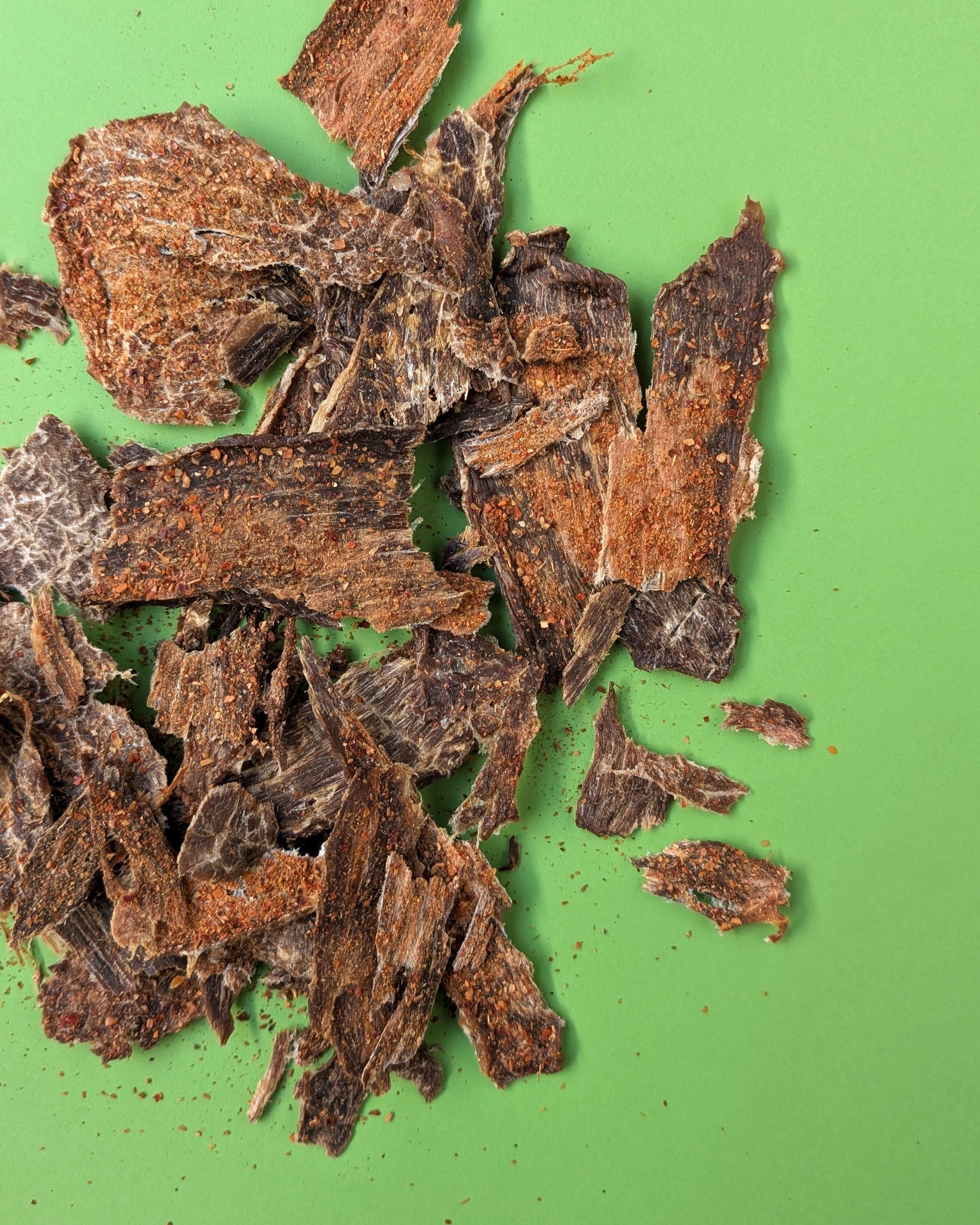 Ingredientes: Carne de res, chile en polvo, ácido cítrico.